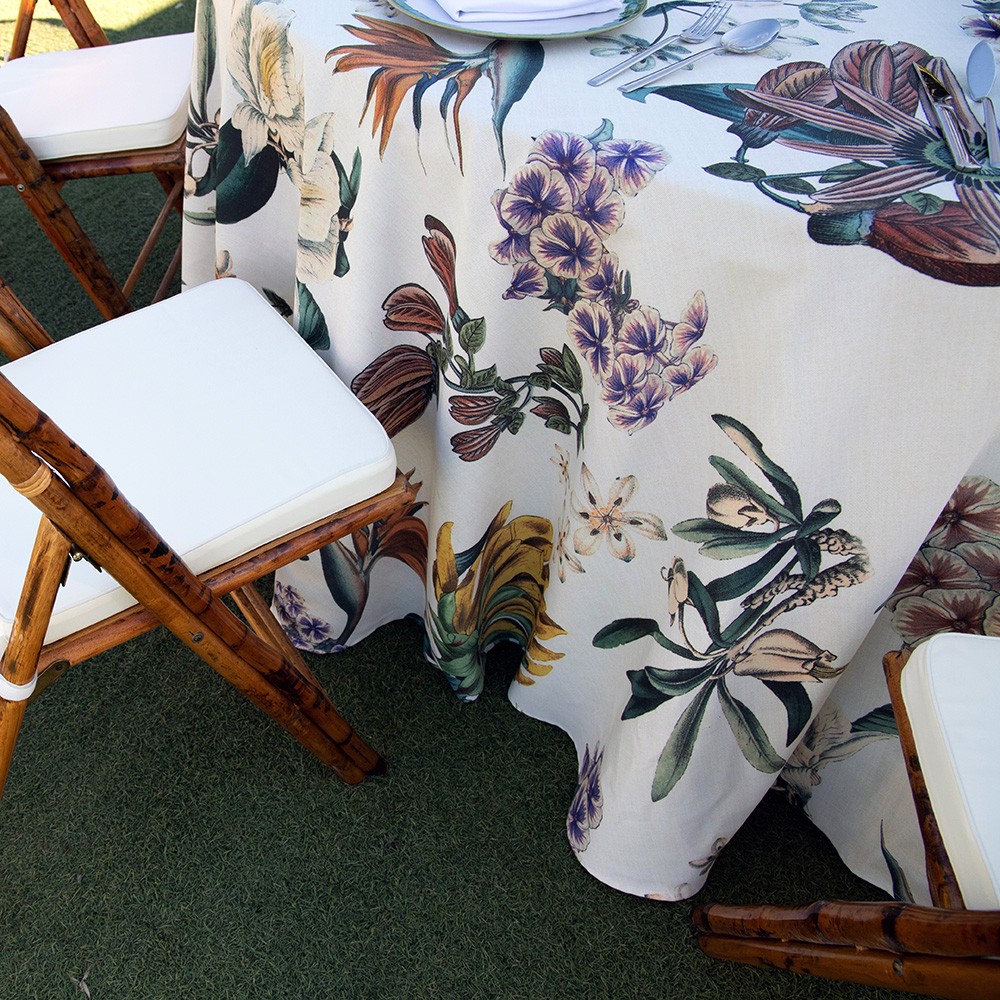 Si prefieres combinar un mantel estampado con servilletas blancas recomendamos nuestras servilletas de satén blanco estándar ya que funcionan perfectamente con cualquier diseño.
